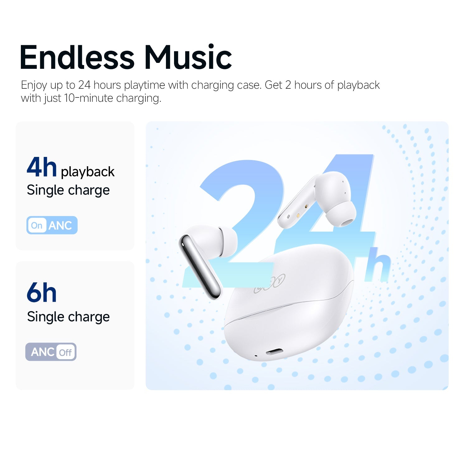 Czas pracy pojedynczy: 6 godzin bez ANC, 4 godziny z ANC